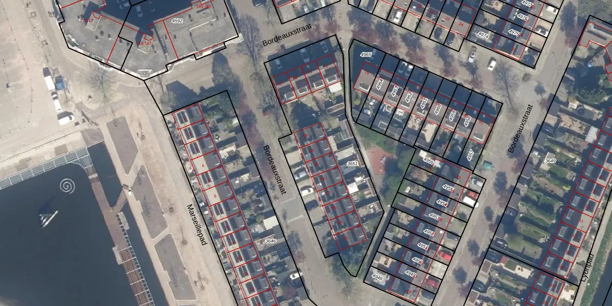 Het perceel waarop Bordeauxstraat 63 staat heeft een oppervlakte van 1581 m². Dit is een zeer groot perceel. De perceeloppervlakte wordt geregistreerd door het Kadaster. Gedetailleerde informatie over de maten van dit perceel kunt u vinden in het rapport Kadastrale kaart met maatvoering van Bordeauxstraat 63.