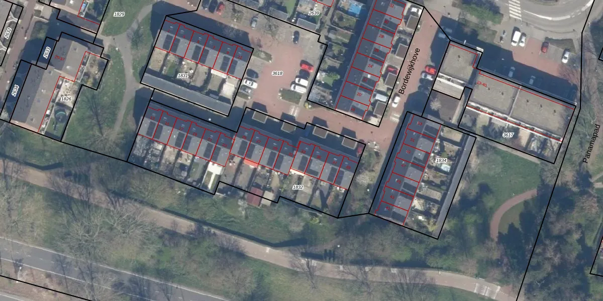 Het perceel waarop Bordewijkhove 33 staat heeft een oppervlakte van 1760 m². Dit is een zeer groot perceel. De perceeloppervlakte wordt geregistreerd door het Kadaster. Gedetailleerde informatie over de maten van dit perceel kunt u vinden in het rapport Kadastrale kaart met maatvoering van Bordewijkhove 33.
