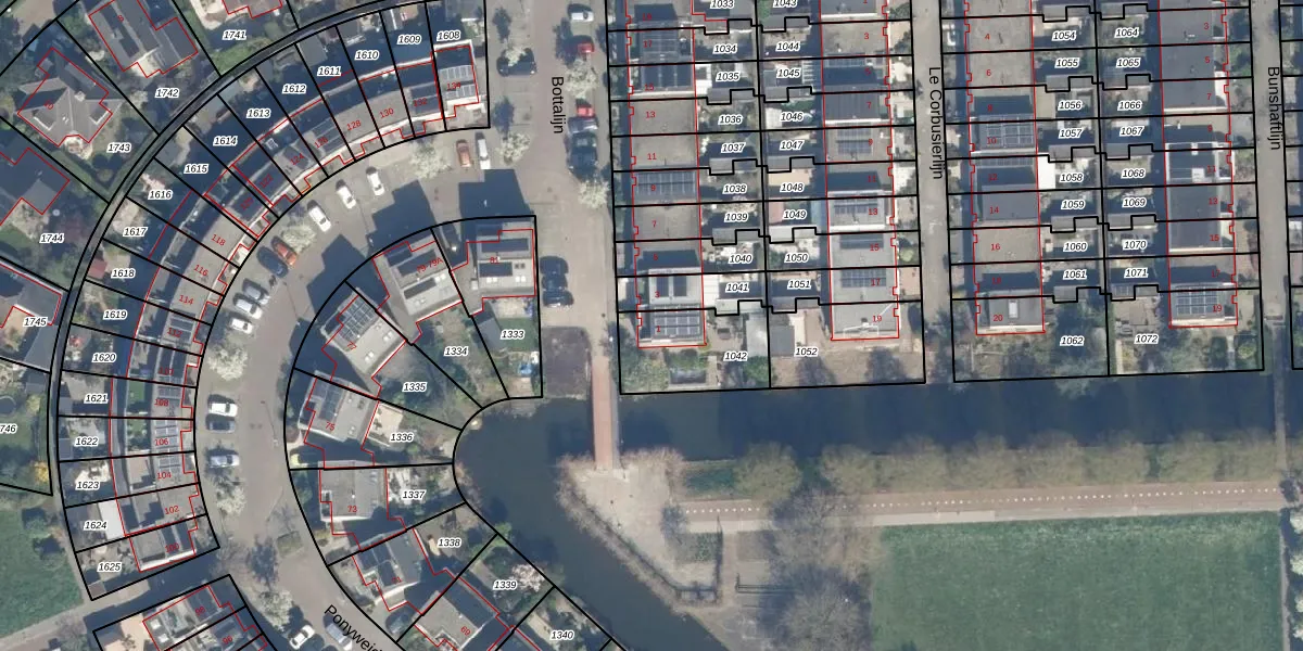 Gebruik de zoekbalk of klik op een perceel voor informatie over de adressen binnen dit perceel.