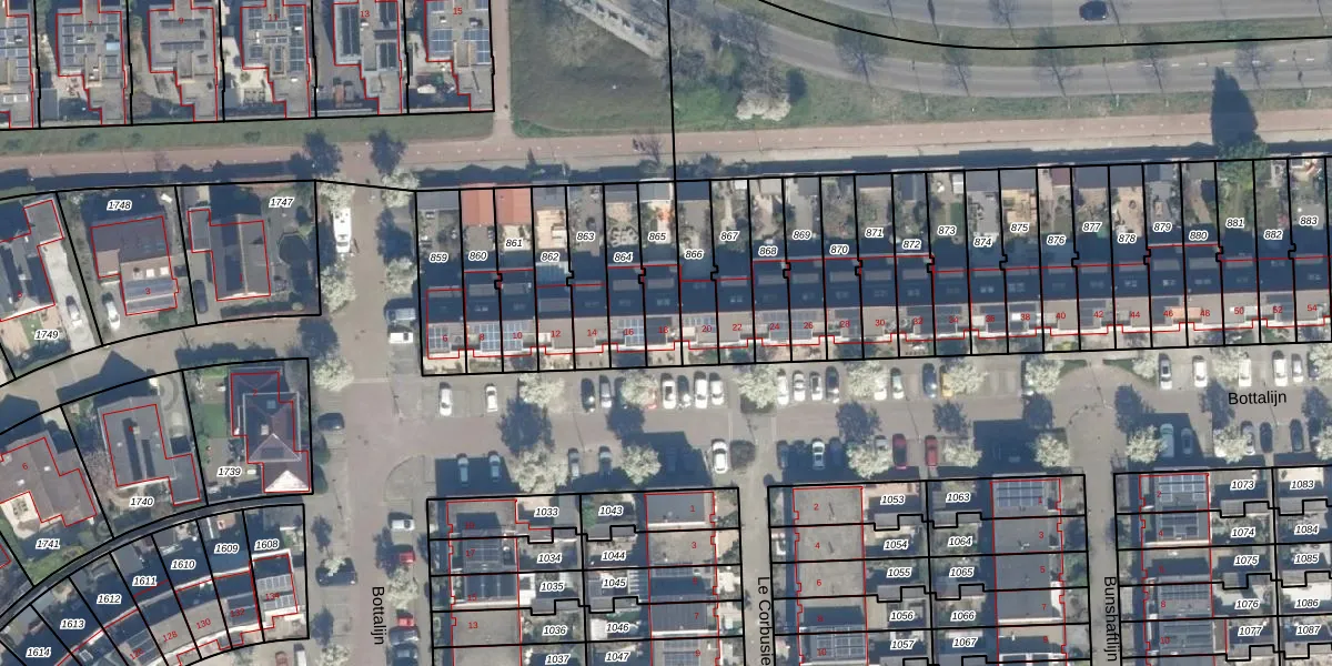 Het perceel waarop Bottalijn 18 staat heeft een oppervlakte van 150 m². Dit is een middelgroot perceel. De perceeloppervlakte wordt geregistreerd door het Kadaster. Gedetailleerde informatie over de maten van dit perceel kunt u vinden in het rapport Kadastrale kaart met maatvoering van Bottalijn 18.