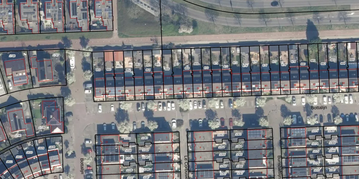 Het perceel waarop Bottalijn 22 staat heeft een oppervlakte van 152 m². Dit is een middelgroot perceel. De perceeloppervlakte wordt geregistreerd door het Kadaster. Gedetailleerde informatie over de maten van dit perceel kunt u vinden in het rapport Kadastrale kaart met maatvoering van Bottalijn 22.