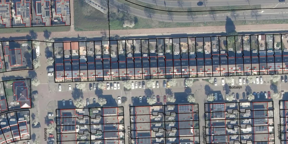 Het perceel waarop Bottalijn 28 staat heeft een oppervlakte van 150 m². Dit is een middelgroot perceel. De perceeloppervlakte wordt geregistreerd door het Kadaster. Gedetailleerde informatie over de maten van dit perceel kunt u vinden in het rapport Kadastrale kaart met maatvoering van Bottalijn 28.