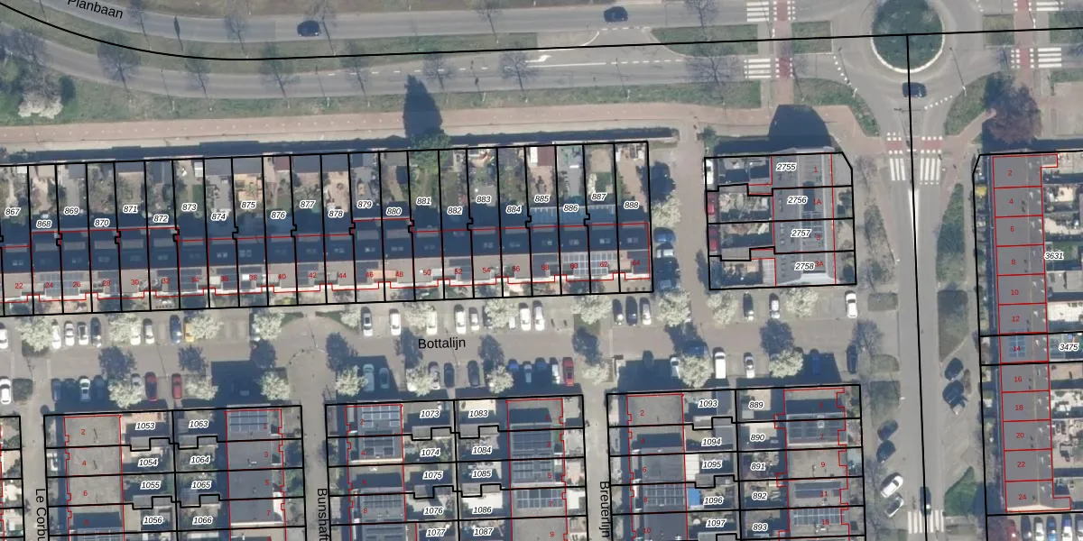 Het perceel waarop Bottalijn 58 staat heeft een oppervlakte van 150 m². Dit is een middelgroot perceel. De perceeloppervlakte wordt geregistreerd door het Kadaster. Gedetailleerde informatie over de maten van dit perceel kunt u vinden in het rapport Kadastrale kaart met maatvoering van Bottalijn 58.