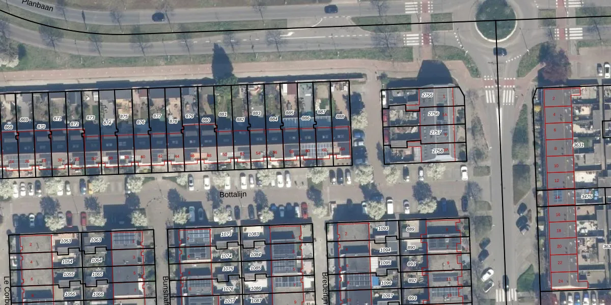 Het perceel waarop Bottalijn 60 staat heeft een oppervlakte van 150 m². Dit is een middelgroot perceel. De perceeloppervlakte wordt geregistreerd door het Kadaster. Gedetailleerde informatie over de maten van dit perceel kunt u vinden in het rapport Kadastrale kaart met maatvoering van Bottalijn 60.