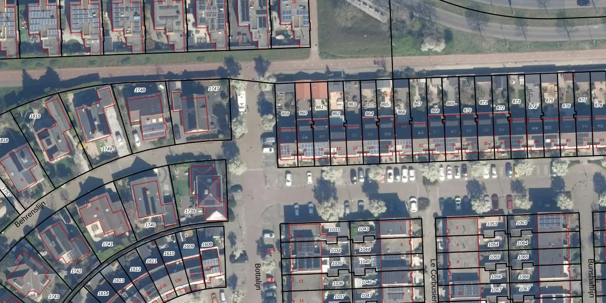 Het perceel waarop Bottalijn 8 staat heeft een oppervlakte van 150 m². Dit is een middelgroot perceel. De perceeloppervlakte wordt geregistreerd door het Kadaster. Gedetailleerde informatie over de maten van dit perceel kunt u vinden in het rapport Kadastrale kaart met maatvoering van Bottalijn 8.