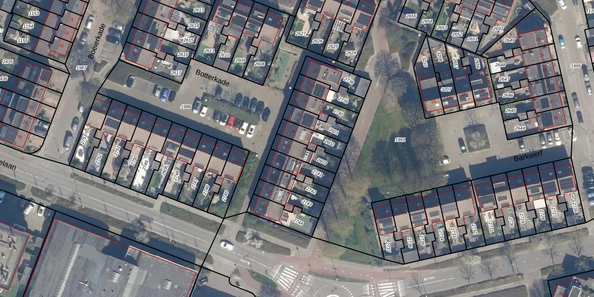 Het perceel waarop Botterkade 15 staat heeft een oppervlakte van 129 m². Dit is een middelgroot perceel. De perceeloppervlakte wordt geregistreerd door het Kadaster. Gedetailleerde informatie over de maten van dit perceel kunt u vinden in het rapport Kadastrale kaart met maatvoering van Botterkade 15.