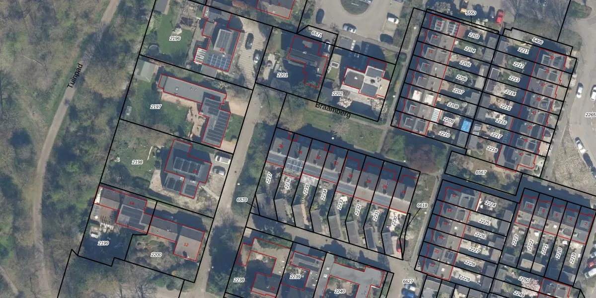 Het perceel waarop Braamberg 36 staat heeft een oppervlakte van 189 m². Dit is een middelgroot perceel. De perceeloppervlakte wordt geregistreerd door het Kadaster. Gedetailleerde informatie over de maten van dit perceel kunt u vinden in het rapport Kadastrale kaart met maatvoering van Braamberg 36.