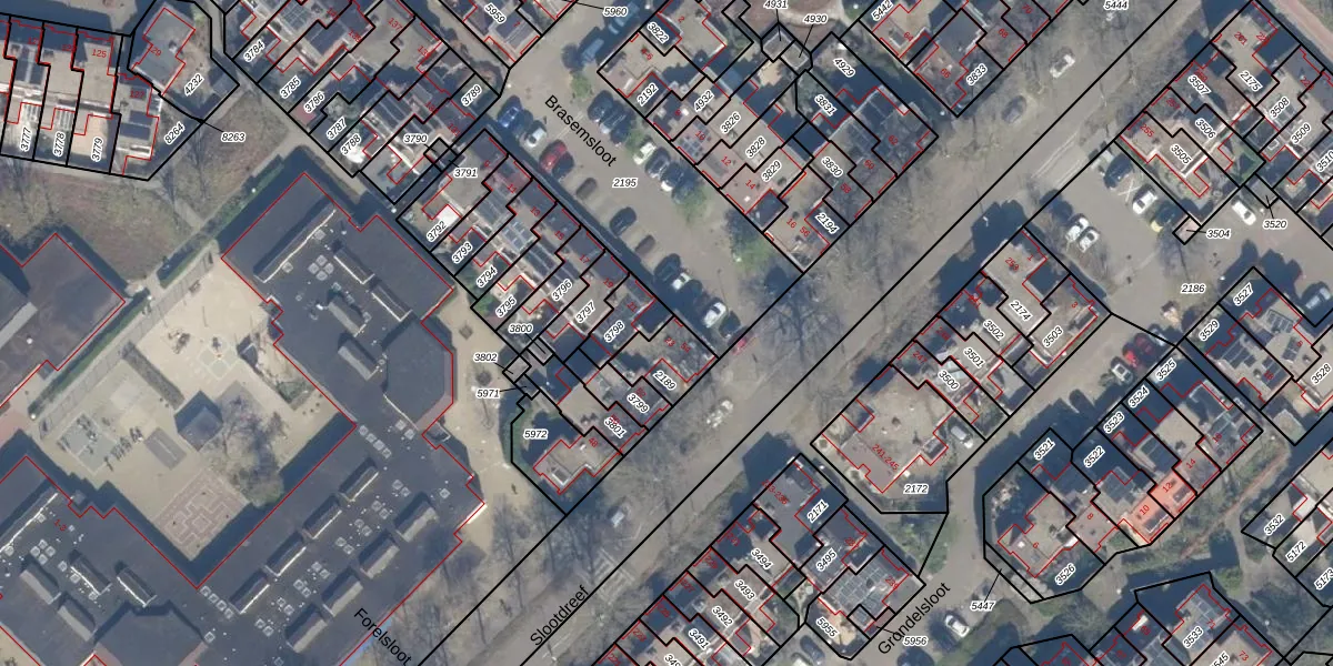 Het perceel waarop Brasemsloot 23 staat heeft een oppervlakte van 115 m². Dit is een middelgroot perceel. De perceeloppervlakte wordt geregistreerd door het Kadaster. Gedetailleerde informatie over de maten van dit perceel kunt u vinden in het rapport Kadastrale kaart met maatvoering van Brasemsloot 23.