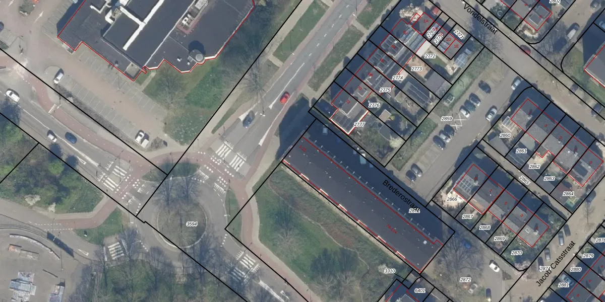 Brederostraat 1 is gelegen op kadastraal perceel ZWD01C2871. Deze kadastrale aanduiding is uniek en wordt gebruikt door het Kadaster om eigendomsrechten en andere zakelijke rechten vast te leggen. Het perceel maakt onderdeel uit van de kadastrale gemeente Zegwaard.