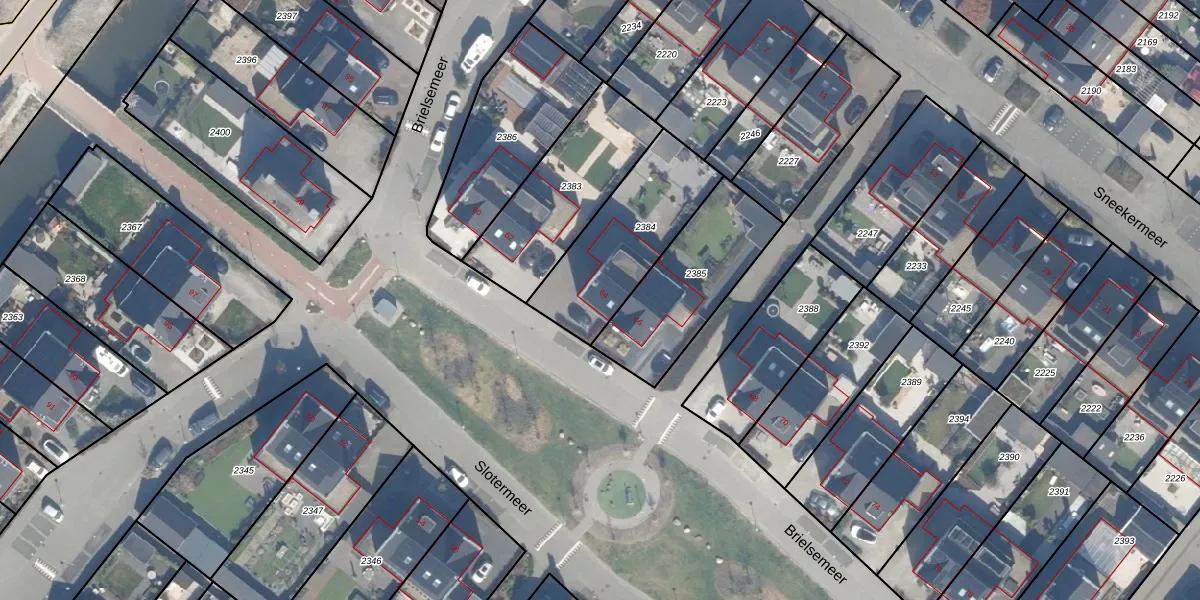 Gebruik de zoekbalk of klik op een perceel voor informatie over de adressen binnen dit perceel.
