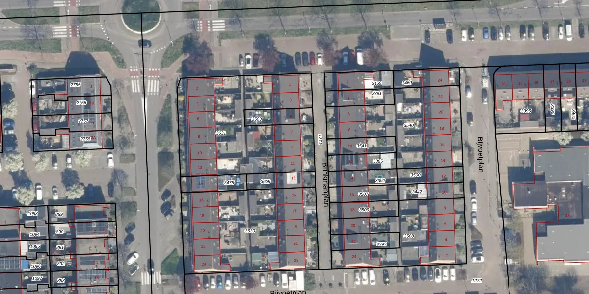 Het perceel waarop Brinkmanplan 9 staat heeft een oppervlakte van 1404 m². Dit is een zeer groot perceel. De perceeloppervlakte wordt geregistreerd door het Kadaster. Gedetailleerde informatie over de maten van dit perceel kunt u vinden in het rapport Kadastrale kaart met maatvoering van Brinkmanplan 9.