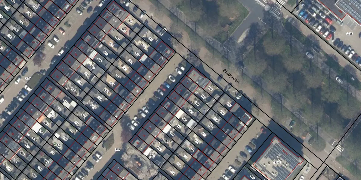 Gebruik de zoekbalk of klik op een perceel voor informatie over de adressen binnen dit perceel.