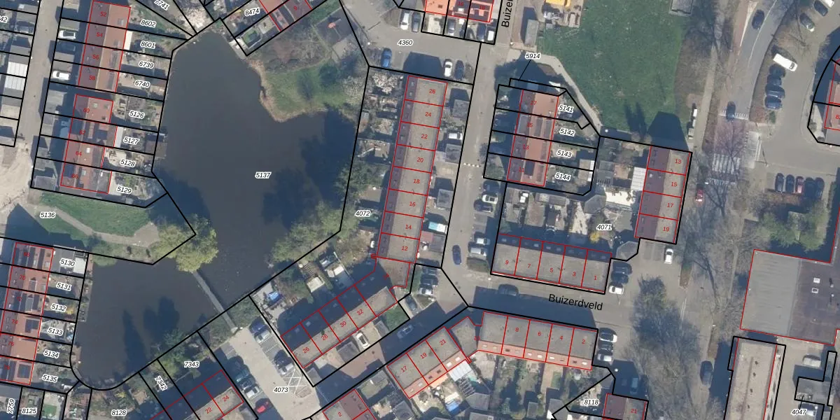 Buizerdveld 16 is gelegen op kadastraal perceel ZWD01B4072. Deze kadastrale aanduiding is uniek en wordt gebruikt door het Kadaster om eigendomsrechten en andere zakelijke rechten vast te leggen. Het perceel maakt onderdeel uit van de kadastrale gemeente Zegwaard.