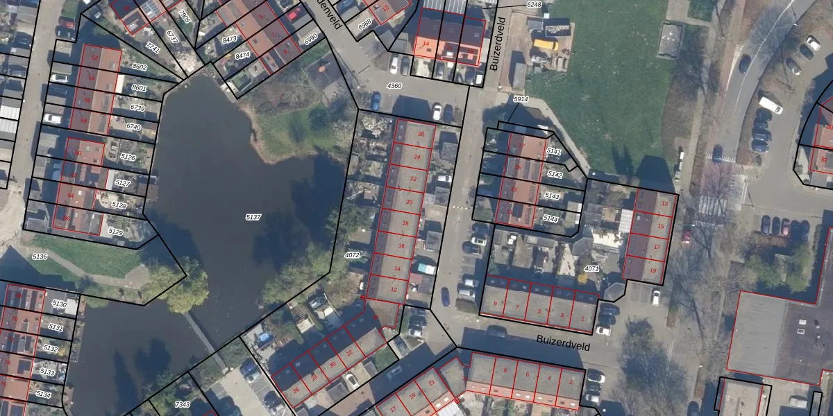 Buizerdveld 20 is gelegen op kadastraal perceel ZWD01B4072. Deze kadastrale aanduiding is uniek en wordt gebruikt door het Kadaster om eigendomsrechten en andere zakelijke rechten vast te leggen. Het perceel maakt onderdeel uit van de kadastrale gemeente Zegwaard.
