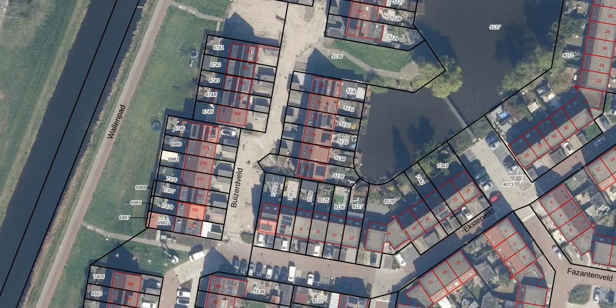 Gebruik de zoekbalk of klik op een perceel voor informatie over de adressen binnen dit perceel.
