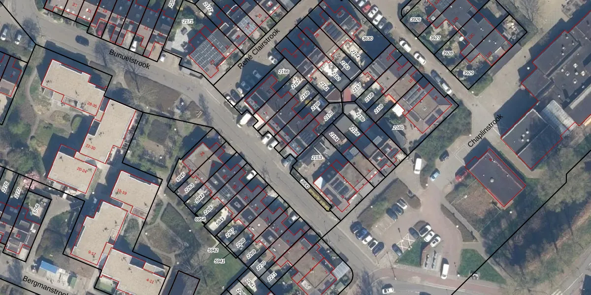 Gebruik de zoekbalk of klik op een perceel voor informatie over de adressen binnen dit perceel.