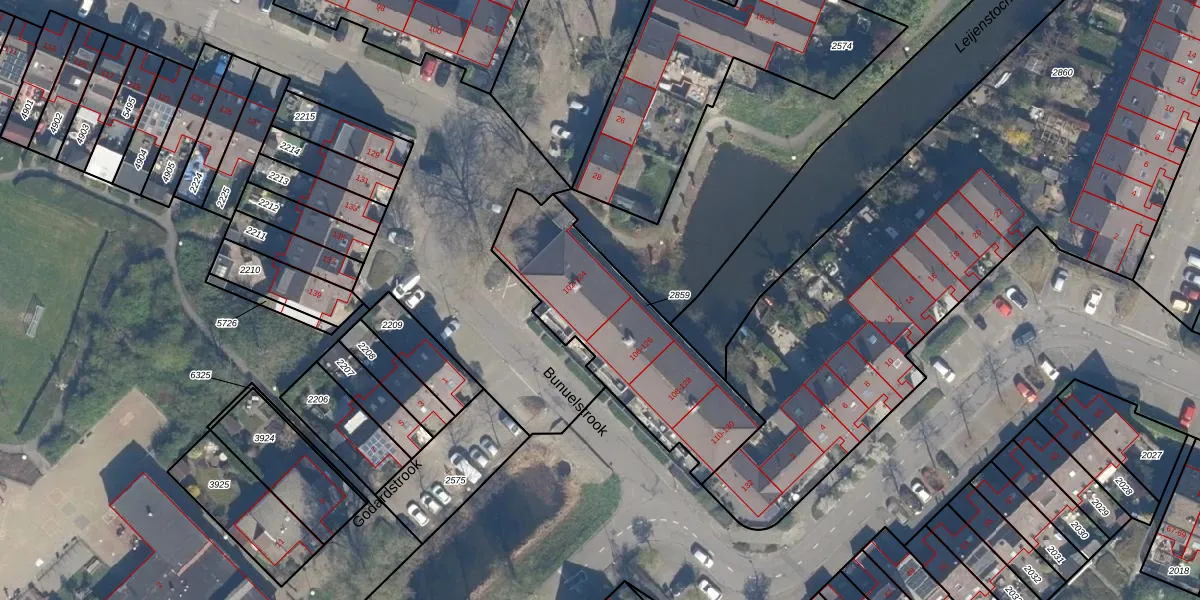 Het perceel waarop Bunuelstrook 104 staat heeft een oppervlakte van 765 m². Dit is een groot perceel. De perceeloppervlakte wordt geregistreerd door het Kadaster. Gedetailleerde informatie over de maten van dit perceel kunt u vinden in het rapport Kadastrale kaart met maatvoering van Bunuelstrook 104.