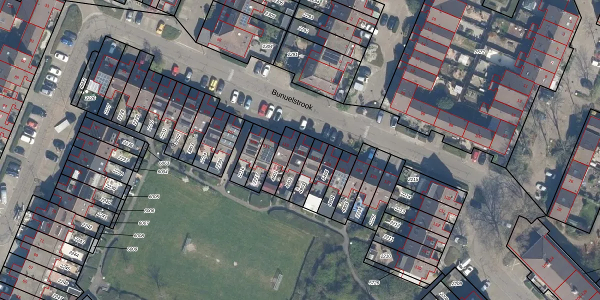Het perceel waarop Bunuelstrook 115 staat heeft een oppervlakte van 116 m². Dit is een middelgroot perceel. De perceeloppervlakte wordt geregistreerd door het Kadaster. Gedetailleerde informatie over de maten van dit perceel kunt u vinden in het rapport Kadastrale kaart met maatvoering van Bunuelstrook 115.