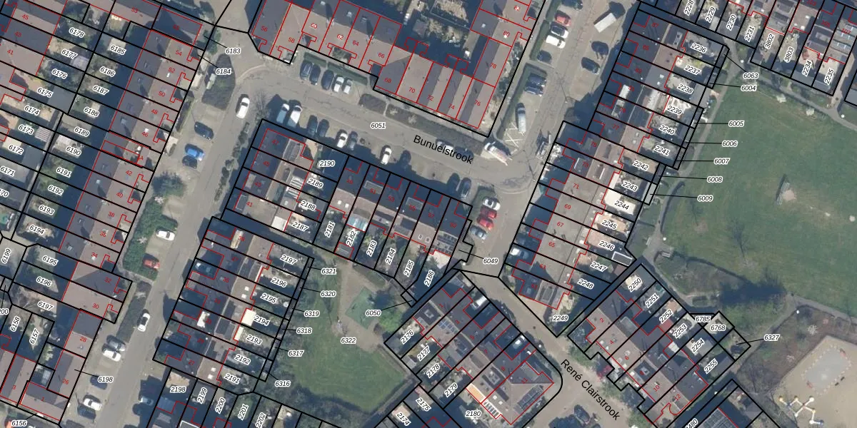 Het perceel waarop Bunuelstrook 57 staat heeft een oppervlakte van 117 m². Dit is een middelgroot perceel. De perceeloppervlakte wordt geregistreerd door het Kadaster. Gedetailleerde informatie over de maten van dit perceel kunt u vinden in het rapport Kadastrale kaart met maatvoering van Bunuelstrook 57.