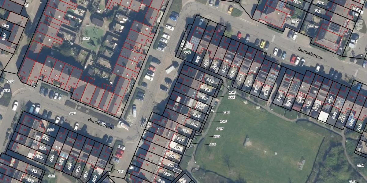 Het perceel waarop Bunuelstrook 83 staat heeft een oppervlakte van 117 m². Dit is een middelgroot perceel. De perceeloppervlakte wordt geregistreerd door het Kadaster. Gedetailleerde informatie over de maten van dit perceel kunt u vinden in het rapport Kadastrale kaart met maatvoering van Bunuelstrook 83.