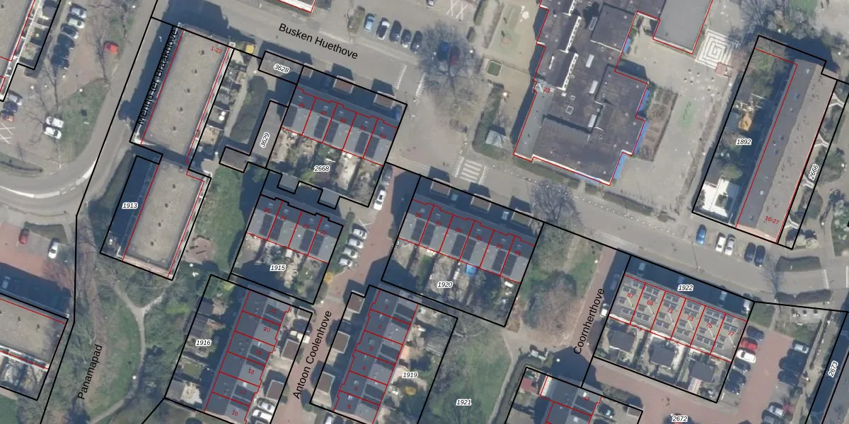 Het perceel waarop Busken Huethove 55 staat heeft een oppervlakte van 820 m². Dit is een groot perceel. De perceeloppervlakte wordt geregistreerd door het Kadaster. Gedetailleerde informatie over de maten van dit perceel kunt u vinden in het rapport Kadastrale kaart met maatvoering van Busken Huethove 55.