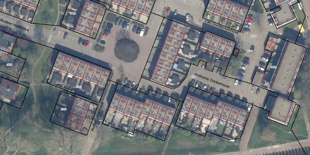 Het perceel waarop Busken Huethove 62 staat heeft een oppervlakte van 1576 m². Dit is een zeer groot perceel. De perceeloppervlakte wordt geregistreerd door het Kadaster. Gedetailleerde informatie over de maten van dit perceel kunt u vinden in het rapport Kadastrale kaart met maatvoering van Busken Huethove 62.