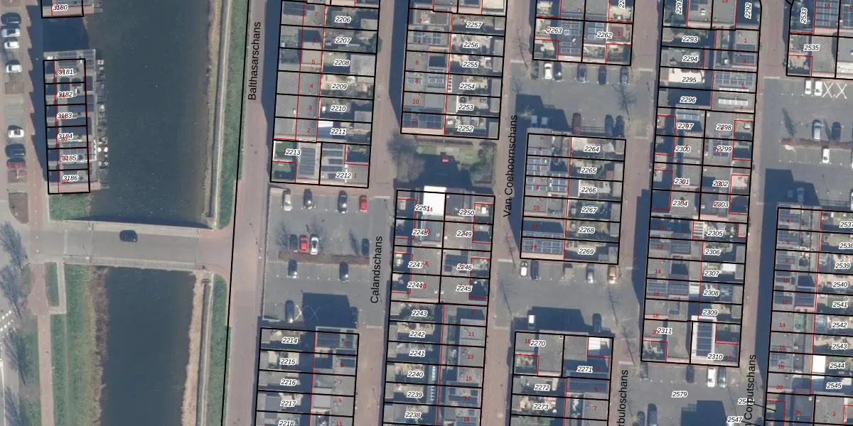 Gebruik de zoekbalk of klik op een perceel voor informatie over de adressen binnen dit perceel.