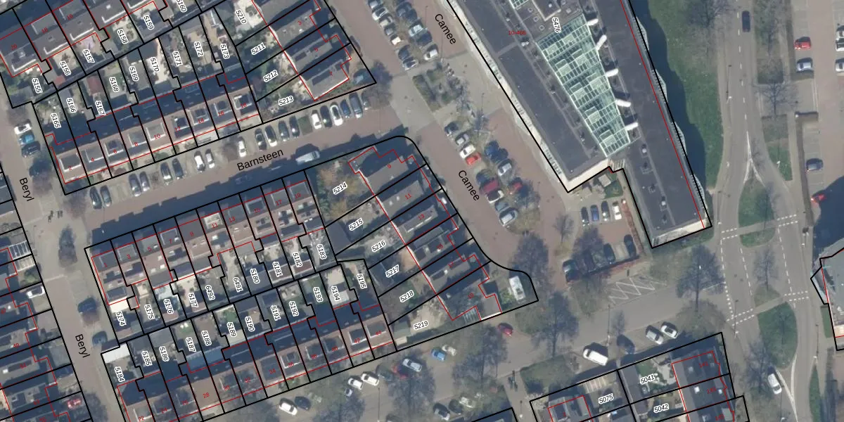 Het perceel waarop Camee 13 staat heeft een oppervlakte van 188 m². Dit is een middelgroot perceel. De perceeloppervlakte wordt geregistreerd door het Kadaster. Gedetailleerde informatie over de maten van dit perceel kunt u vinden in het rapport Kadastrale kaart met maatvoering van Camee 13.