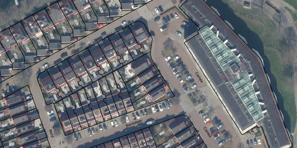 Het perceel waarop Camee 3 staat heeft een oppervlakte van 169 m². Dit is een middelgroot perceel. De perceeloppervlakte wordt geregistreerd door het Kadaster. Gedetailleerde informatie over de maten van dit perceel kunt u vinden in het rapport Kadastrale kaart met maatvoering van Camee 3.