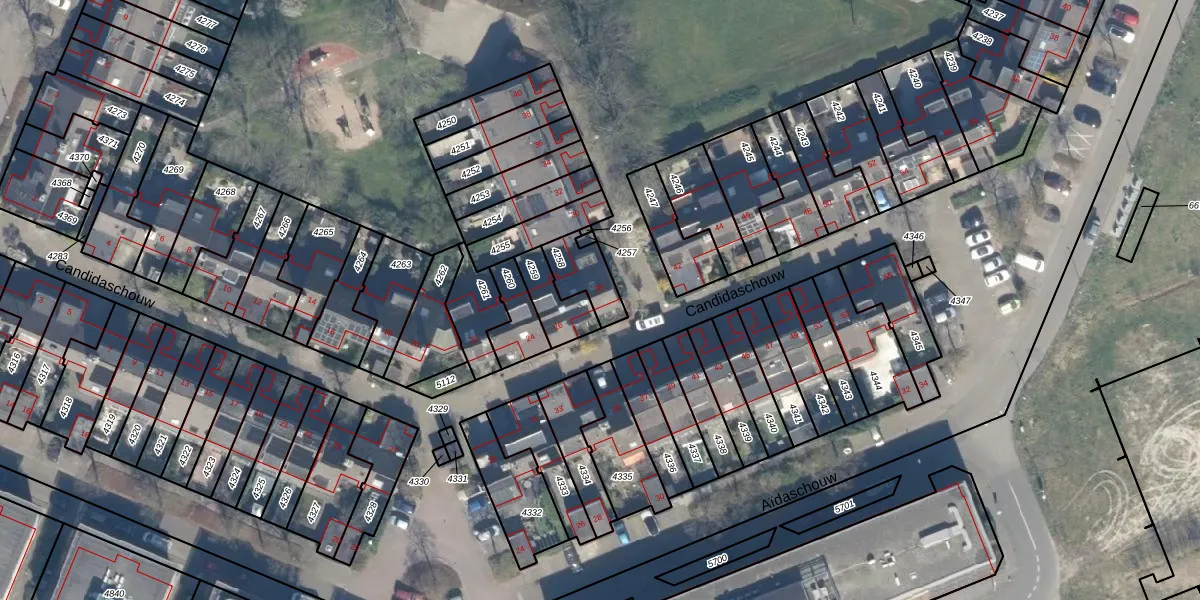 Het perceel waarop Candidaschouw 28 staat heeft een oppervlakte van 113 m². Dit is een middelgroot perceel. De perceeloppervlakte wordt geregistreerd door het Kadaster. Gedetailleerde informatie over de maten van dit perceel kunt u vinden in het rapport Kadastrale kaart met maatvoering van Candidaschouw 28.