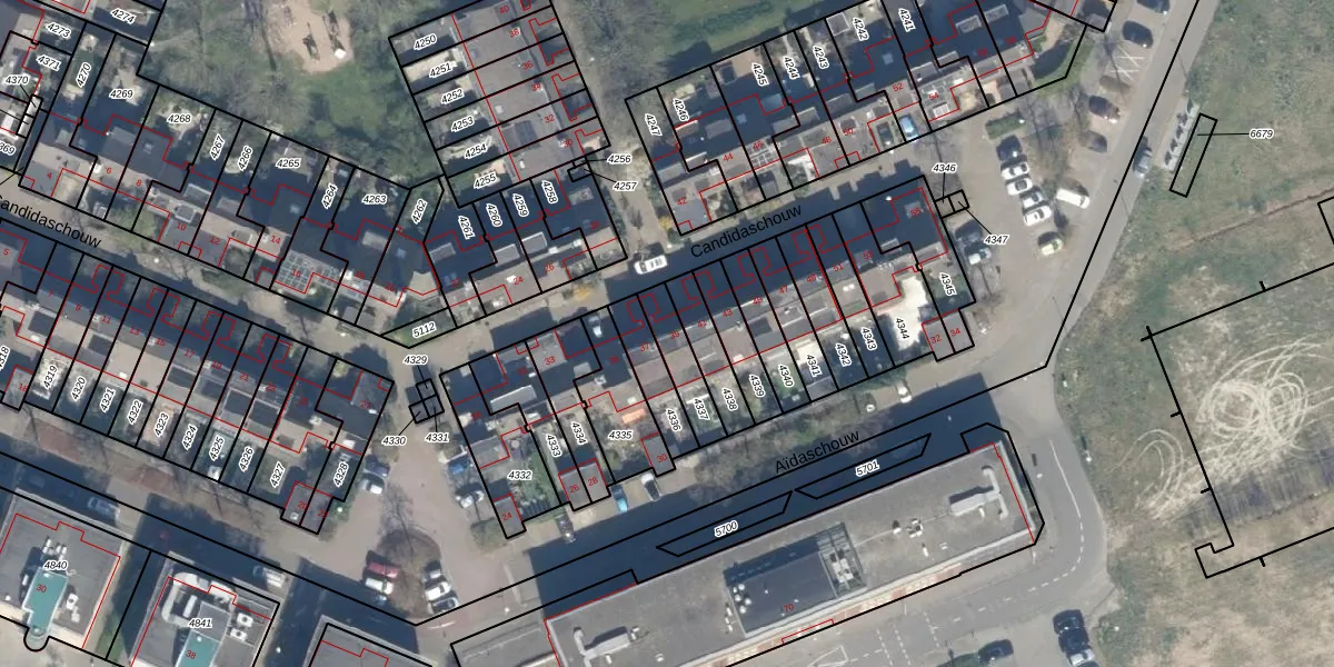 Het perceel waarop Candidaschouw 39 staat heeft een oppervlakte van 112 m². Dit is een middelgroot perceel. De perceeloppervlakte wordt geregistreerd door het Kadaster. Gedetailleerde informatie over de maten van dit perceel kunt u vinden in het rapport Kadastrale kaart met maatvoering van Candidaschouw 39.