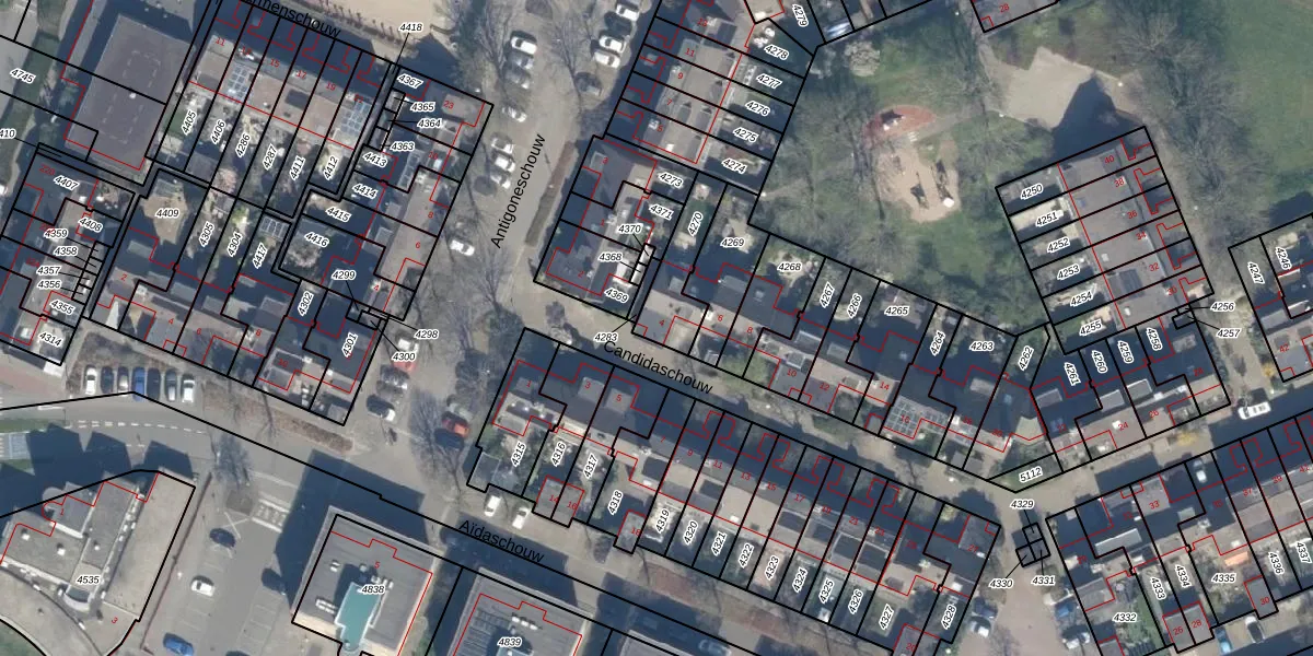 Het perceel waarop Candidaschouw 4 staat heeft een oppervlakte van 165 m². Dit is een middelgroot perceel. De perceeloppervlakte wordt geregistreerd door het Kadaster. Gedetailleerde informatie over de maten van dit perceel kunt u vinden in het rapport Kadastrale kaart met maatvoering van Candidaschouw 4.