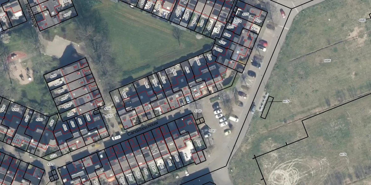 Het perceel waarop Candidaschouw 52 staat heeft een oppervlakte van 158 m². Dit is een middelgroot perceel. De perceeloppervlakte wordt geregistreerd door het Kadaster. Gedetailleerde informatie over de maten van dit perceel kunt u vinden in het rapport Kadastrale kaart met maatvoering van Candidaschouw 52.