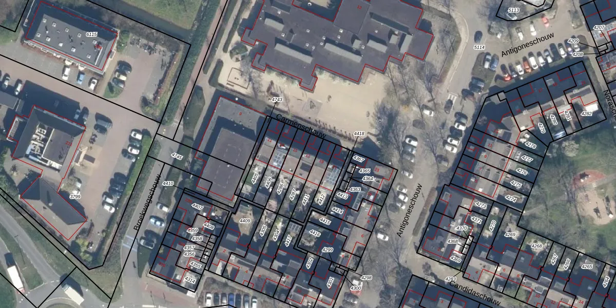Het perceel waarop Carmenschouw 17 staat heeft een oppervlakte van 127 m². Dit is een middelgroot perceel. De perceeloppervlakte wordt geregistreerd door het Kadaster. Gedetailleerde informatie over de maten van dit perceel kunt u vinden in het rapport Kadastrale kaart met maatvoering van Carmenschouw 17.