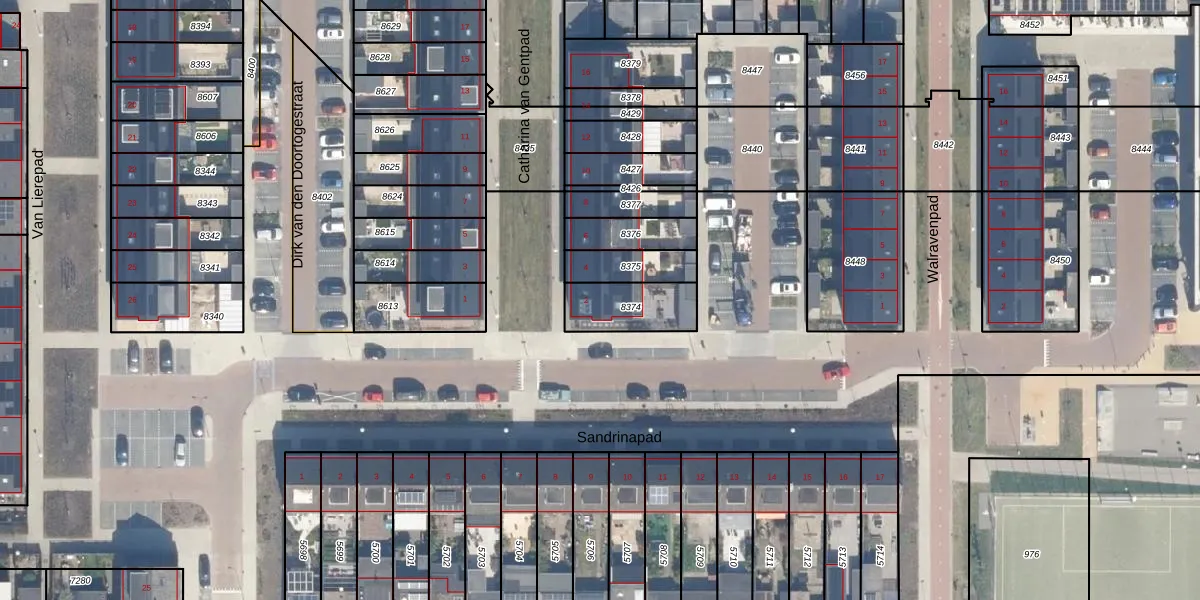 Gebruik de zoekbalk of klik op een perceel voor informatie over de adressen binnen dit perceel.