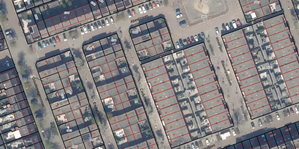 Het perceel waarop Cederzoom 8 staat heeft een oppervlakte van 2661 m². Dit is een zeer groot perceel. De perceeloppervlakte wordt geregistreerd door het Kadaster. Gedetailleerde informatie over de maten van dit perceel kunt u vinden in het rapport Kadastrale kaart met maatvoering van Cederzoom 8.