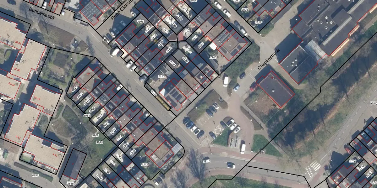 Het perceel waarop Chaplinstrook 7 staat heeft een oppervlakte van 387 m². Dit is een groot perceel. De perceeloppervlakte wordt geregistreerd door het Kadaster. Gedetailleerde informatie over de maten van dit perceel kunt u vinden in het rapport Kadastrale kaart met maatvoering van Chaplinstrook 7.