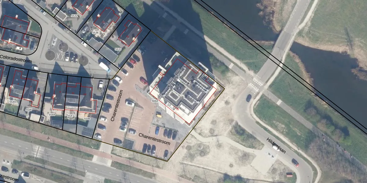 Het perceel waarop Charentestroom 47 staat heeft een oppervlakte van 2827 m². Dit is een zeer groot perceel. De perceeloppervlakte wordt geregistreerd door het Kadaster. Gedetailleerde informatie over de maten van dit perceel kunt u vinden in het rapport Kadastrale kaart met maatvoering van Charentestroom 47.