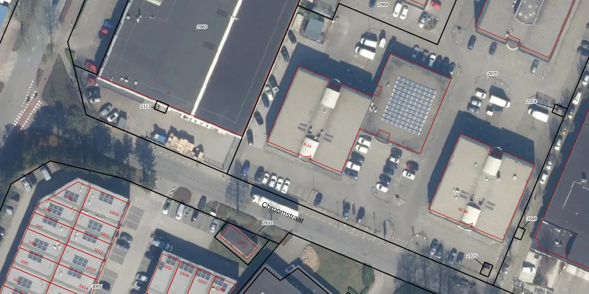 Het perceel waarop Chroomstraat 6 staat heeft een oppervlakte van 8828 m². Dit is een zeer groot perceel. De perceeloppervlakte wordt geregistreerd door het Kadaster. Gedetailleerde informatie over de maten van dit perceel kunt u vinden in het rapport Kadastrale kaart met maatvoering van Chroomstraat 6.