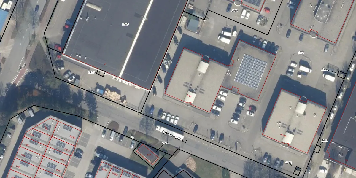 Het perceel waarop Chroomstraat 8 staat heeft een oppervlakte van 8828 m². Dit is een zeer groot perceel. De perceeloppervlakte wordt geregistreerd door het Kadaster. Gedetailleerde informatie over de maten van dit perceel kunt u vinden in het rapport Kadastrale kaart met maatvoering van Chroomstraat 8.