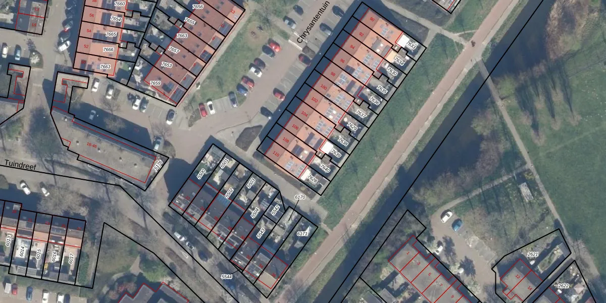 Gebruik de zoekbalk of klik op een perceel voor informatie over de adressen binnen dit perceel.