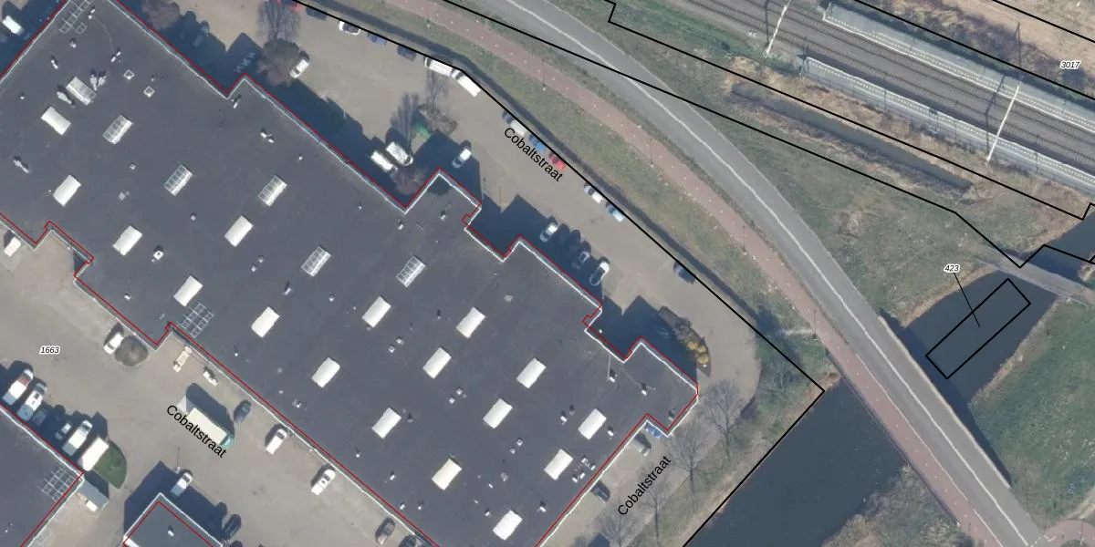 Het perceel waarop Cobaltstraat 17 staat heeft een oppervlakte van 2,9 ha. Dit is een zeer groot perceel. De perceeloppervlakte wordt geregistreerd door het Kadaster. Gedetailleerde informatie over de maten van dit perceel kunt u vinden in het rapport Kadastrale kaart met maatvoering van Cobaltstraat 17.