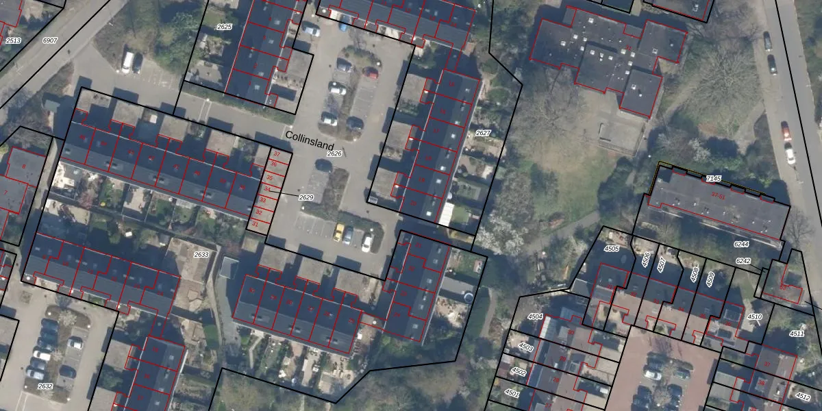 Het perceel waarop Collinsland 20 staat heeft een oppervlakte van 2077 m². Dit is een zeer groot perceel. De perceeloppervlakte wordt geregistreerd door het Kadaster. Gedetailleerde informatie over de maten van dit perceel kunt u vinden in het rapport Kadastrale kaart met maatvoering van Collinsland 20.
