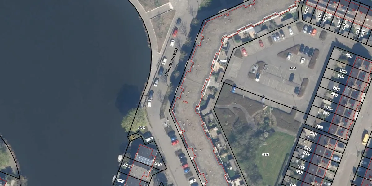 Het perceel waarop Columbusrede 26 staat heeft een oppervlakte van 3297 m². Dit is een zeer groot perceel. De perceeloppervlakte wordt geregistreerd door het Kadaster. Gedetailleerde informatie over de maten van dit perceel kunt u vinden in het rapport Kadastrale kaart met maatvoering van Columbusrede 26.