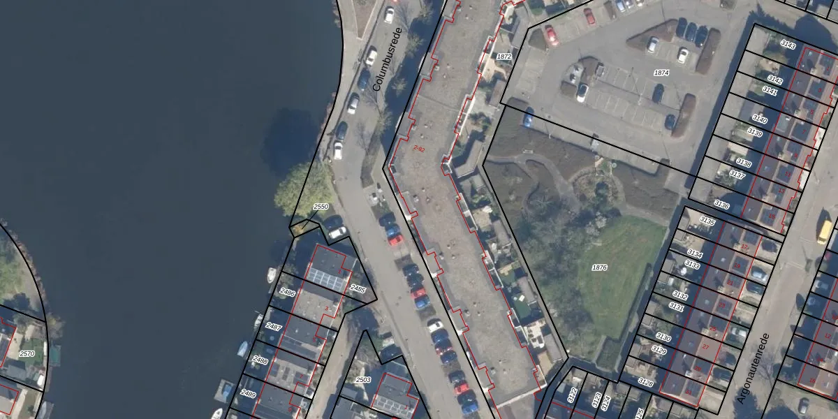 Het perceel waarop Columbusrede 38 staat heeft een oppervlakte van 3297 m². Dit is een zeer groot perceel. De perceeloppervlakte wordt geregistreerd door het Kadaster. Gedetailleerde informatie over de maten van dit perceel kunt u vinden in het rapport Kadastrale kaart met maatvoering van Columbusrede 38.