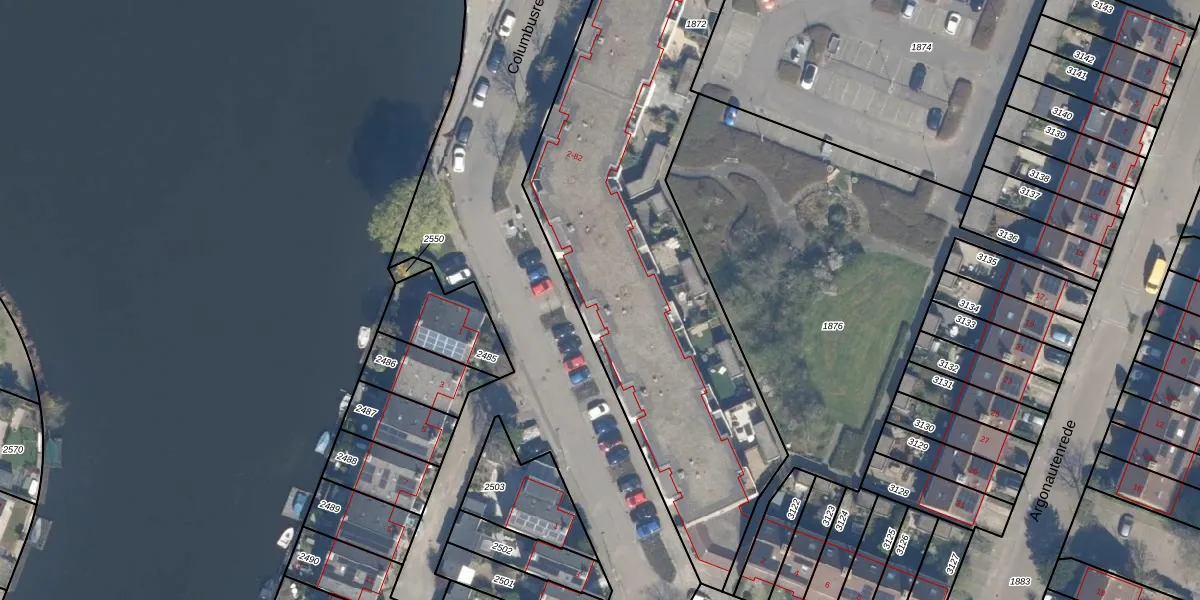 Het perceel waarop Columbusrede 48 staat heeft een oppervlakte van 3297 m². Dit is een zeer groot perceel. De perceeloppervlakte wordt geregistreerd door het Kadaster. Gedetailleerde informatie over de maten van dit perceel kunt u vinden in het rapport Kadastrale kaart met maatvoering van Columbusrede 48.