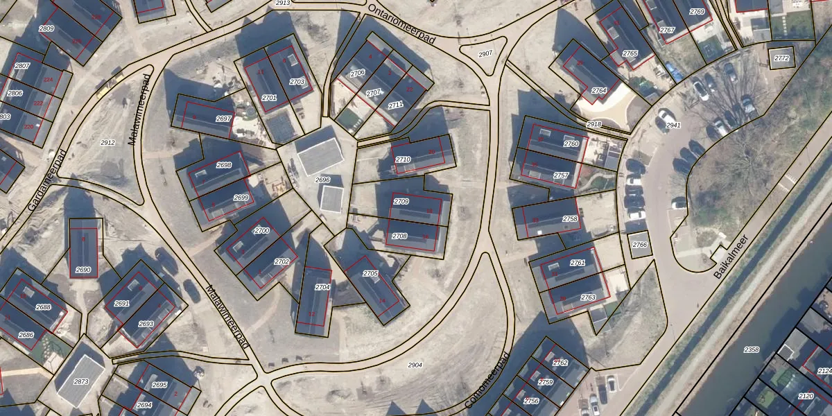 Gebruik de zoekbalk of klik op een perceel voor informatie over de adressen binnen dit perceel.