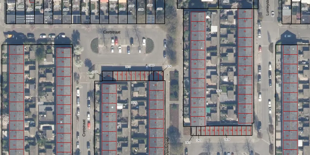 Het perceel waarop Cretstraat 2 staat heeft een oppervlakte van 40 m². Dit is een klein perceel. De perceeloppervlakte wordt geregistreerd door het Kadaster. Gedetailleerde informatie over de maten van dit perceel kunt u vinden in het rapport Kadastrale kaart met maatvoering van Cretstraat 2.