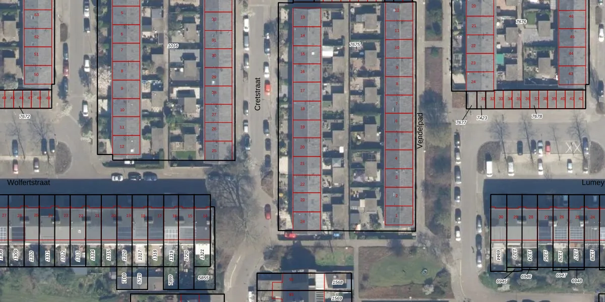 Het perceel waarop Cretstraat 20 staat heeft een oppervlakte van 3437 m². Dit is een zeer groot perceel. De perceeloppervlakte wordt geregistreerd door het Kadaster. Gedetailleerde informatie over de maten van dit perceel kunt u vinden in het rapport Kadastrale kaart met maatvoering van Cretstraat 20.