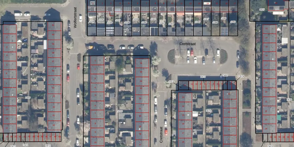 Het perceel waarop Cretstraat 35 staat heeft een oppervlakte van 3428 m². Dit is een zeer groot perceel. De perceeloppervlakte wordt geregistreerd door het Kadaster. Gedetailleerde informatie over de maten van dit perceel kunt u vinden in het rapport Kadastrale kaart met maatvoering van Cretstraat 35.
